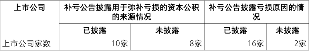 18家补亏上市公司中有10家上市公司披露了用于弥补亏损的资本公积的来源,如“本次拟用于弥补母公司亏损的资本公积来源于股东出资形成的资本(股本)溢价,不属于特定股东专享或限定用途的资本公积金。”,其余上市公司未披露用于弥补亏损的资本公积的来源。