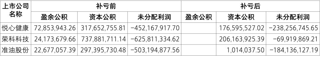 注:准油股份(002207.SZ)在公告中披露了用于弥补亏损的资本公积仅为资本公积——股本溢价部分,资本公积-股本溢价 296,381,692.98 元,来源于公司 2008 年 1 月 28 日首次公开发行股份 2000 万股、2014 年 1 月非公开发行新股 2013 万股、2020 年 9 月非公开发行新股 22,878,000 股,溢价发行形成的资本公积。