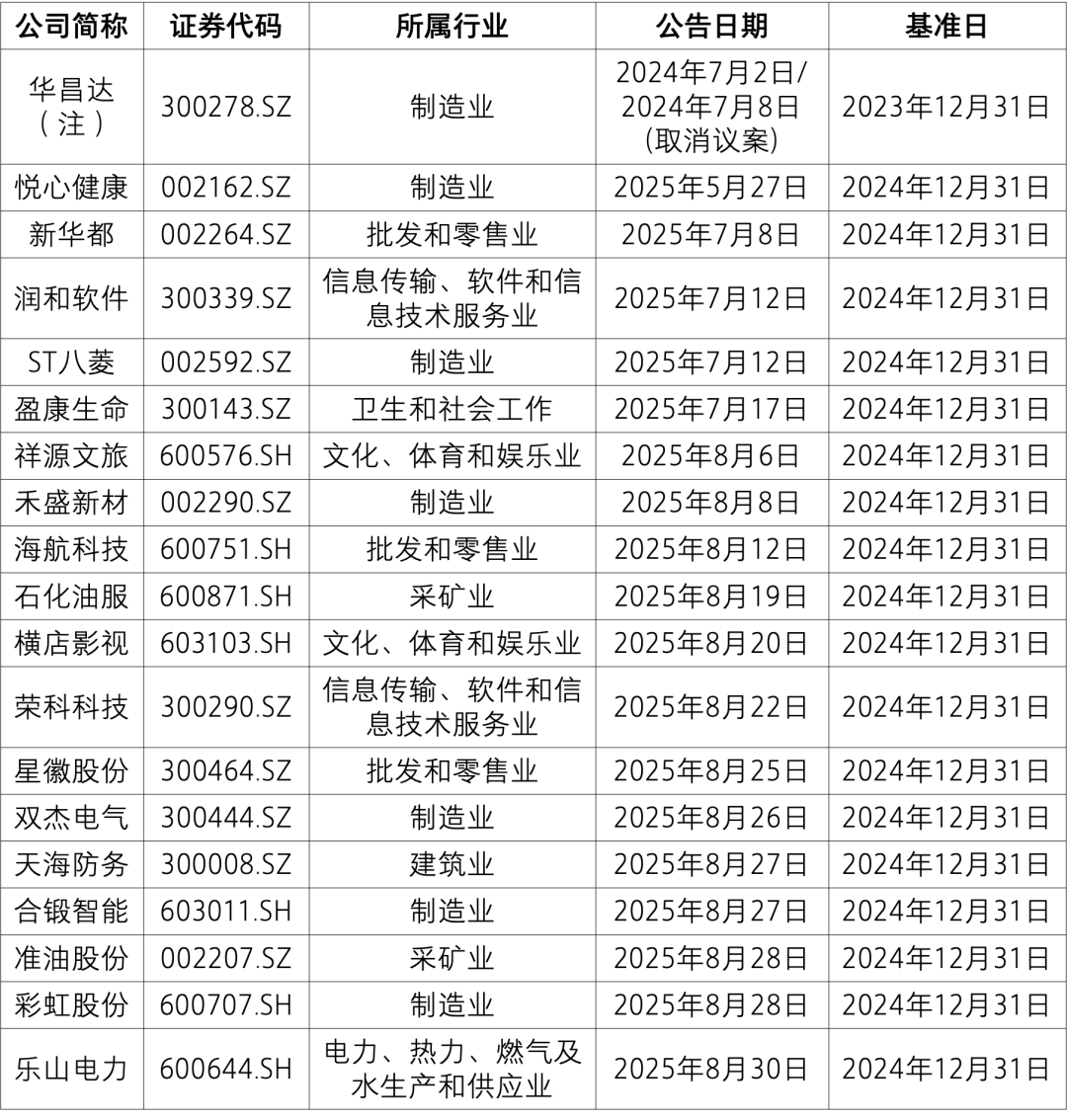 截至2025年8月30日,19家A股上市公司发布了公司使用公积金弥补亏损的公告(部分上市公司尚未就补亏方案召开股东会审批),其中1家上市公司发布公告取消了使用公积金弥补亏损的议案,其余18家上市公司发布了基于2024年12月31日经审计的母公司个别财务报表数据使用公积金弥补亏损的公告。19家A股上市公司相关信息汇总如下: