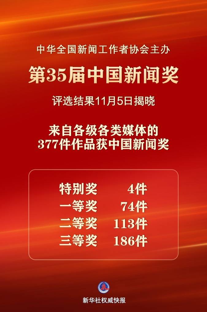 由中华全国新闻工作者协会主办的第35届中国新闻奖评选结果11月5日揭晓。